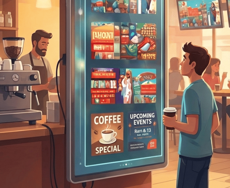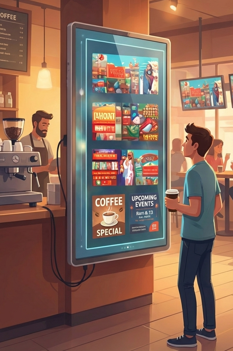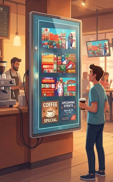 Get your brand on digital screens in high-traffic businesses of your neighborhood